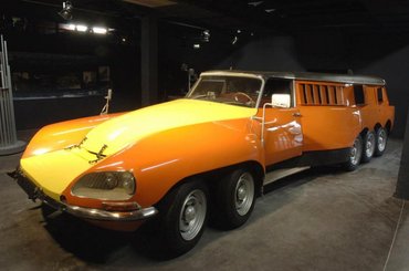 A rövidítés nagyjából annyit tesz, hogy gyors nehézsúlyú, és egy öttengelyes, 7,2 méter hosszúra és 2,45 méter szélesre növesztett DS kombit takar. A hivatalos neve Citroën DS PLR Break, de azt nyilván mindenki egyértelműen látja, érzi a képekre pillantva, hogy a sorozatgyártású DS-hez ennek a 9,5 tonnás gépnek néhány közös karosszériaelemen túl nem lehet nagyon sok köze.