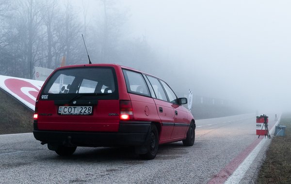 Végül az öreg kombi a rajtvonalnál. Egy ideje kíváncsi voltam, hogy milyen élmény a Tulaj a pályán bólyái között végigfűzni az autót. Igaz, a nap végére és tejködben, de azért kiderült, hogy milyen: király!