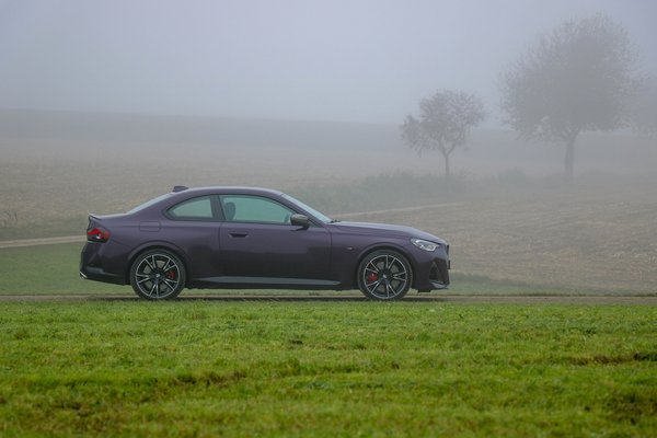 Négy autót mutatott be egyetlen nap alatt a BMW, ami miatt egyre inkább egy féktelen rohanásba váltott át a nap, villámgyorsan toltuk be a szaftos pulled pork szendvicset, aztán ültünk a következő hathengeres BMW-be. Szerethető ötlet volt tőlük, hogy nem nyomasztottak az elektromos jövővel, de a nap végére mégis úgy éreztem magam, mint egy kifacsart citrom. Azért az M240i xDrive-val erősen jót mentünk, rohanás közben készült róla egy festményszerű kép, ahol mintha egyetlen síkban volna a háttér, a fák pedig kiegyensúlyozzák a képet.
