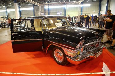 De ide tartozik az a '62-es GAZ13 Csajka is, amit a háború elől menekítettek ki a Krim-félszigetről, két nappal a harcok kezdete előtt. Igaz, hogy a gazdája már modernizálta, ha már valami modernebb cirkáló helyett ezt választotta mindennapi társának: a klíma, a házimozi rendszer, a motoros függöny és természetesen a motoros vodkatartó sem hiányzik belőle.