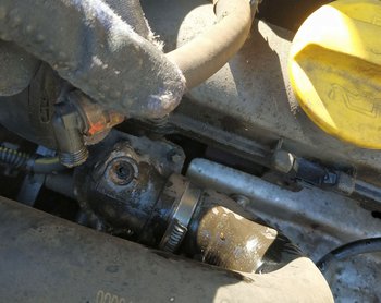 Például akkor, amikor az Opel alatt kiszúrtam egy tócsát - pakolás közben feltűnt, hogy egy folt terjed a kövön. Nem kellett sokáig keresgélni, a kiegyeníltőtartály a minimumon, a termosztátház tetejébe futó cső csatlakozója pedig beletört a furatba. Az F Astrán ez még egy egyenes csatlakozó fémből, a G-nél már műanyag és L alakú, a törése ismert hiba.