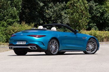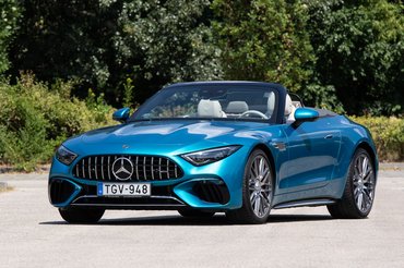 A dögös megjelenés ezzel együtt kevés lett volna a fejem elcsavarásához, ami még inkább lebilincselt benne, az a sokoldalúsága. Kezdődik ez egyáltalán azzal, hogy kabrió. Ha nem tetszik az időjárás, zárt autóként használom, ha viszont friss levegőre vágyom, tizenöt másodperc múlva már a nap melegíti a fejem búbját. A folytatás sem gyenge azonban, mert ha nem sietek sehová, csak úgy korzóznék egyet, az SL abban is partner. V8-asának duruzsolását szinte hallani sem lehet, nyugodtan átadhatjuk magunkat a Burmester Hifi-ből áradó muzsikának, vagy a pihentető programok valamelyikének.