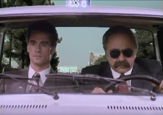 A fénypont viszont csak most jön. A Minik - ismét lépcsőkön keresztül - lehajtanak valamilyen aluljáróba. Ezt látva a magyar rendőrfőnök megjegyzi, hogy "két földalatti garázsa van az épületnek." Természetesen az állítólagos mélygarázsban egyetlen autót sem látunk, járókelő viszont annál több van. Furcsák ezek a magyarok: úgy tűnik, szeretik olasz autóikat az utcán hagyni, miközben ők a garázsokban múlatják az időt.