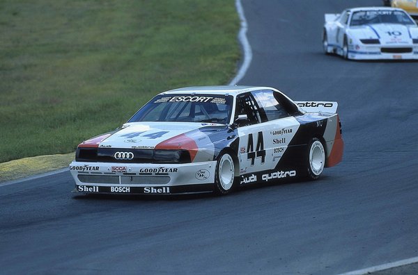 1988-ban beszállt a buliba az Audi, és mindenük megvolt ahhoz, hogy nagy balhét csináljanak Amerikában. Csináltak is. Az egész tulajdonképpen szinte adta magát, hiszen a versenyautóhoz a fő technikai részleteket nem kellett újra feltalálni: a raliban már a 2,1 literes, sorötös turbómotor és az ördögien jó Quattro hajtás is bizonyított, ezeket már csak bele kellett szuszakolni egy kaszniba, és kész is volt a Trans-Am-képes Audi.