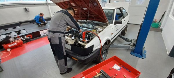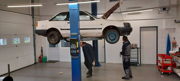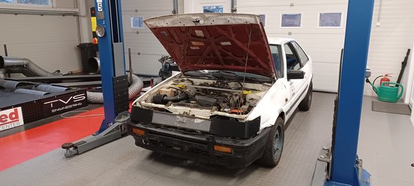 Nem szokás 4A-GE-t ilyen módokon variálni, de ki tudja? Az összes Hacsi külföldről került ide, és megesett már az a csoda, hogy nagyobb tengelyeket találtak az itthoni huligánok egy motorban. Sűrítési végnyomást, alias kompressziót is gondoltuk, hogy kellene mérni, az is sokat elárul egy motorról. Béla pedig kíváncsi volt még a végáttételre is, úgyhogy gondoltuk azt is megnézzük, leforgatjuk a diffit a csápos emelőn. Ez utóbbinak nincs köze a teljesítményhez, de kiderül, hogy mennyire széria a jármű.