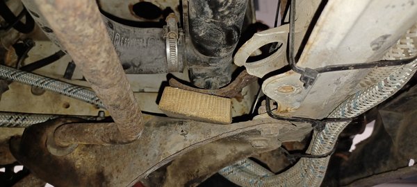 A kipufogóoldal is gyárinak tűnik, helyén van az a gagyi leömlő, amit azonnal kukázni kellene, ha erősebbé akarnánk tenni a motort, ki kellene váltani egy őrületesen tekergőző kígyóval. De itt még a bumszli gyári vasszörny éktelenkedik a motor oldalán, ami folytatódik egy kipufogónak nevezett tákolmánnyal. Amely mű amúgy beleér a hátsó hídba, és leégetné a szőrt a lábunkról cipőn és nadrágon is át a beltérben, ha Bandi tizenkét évvel ezelőtt nem rakott volna a talpunk alá egy mára már omladozó hővédelmet. A kipufogógáz számos helyen dől a csőből, de őrületesen szexi, félméteres lángcsóvák csak a legvégén távoznak belőle alkalmanként. A gyári szívószál helyett sokkal jobb ez a rendszer, jóval nagyobb az átmérője végig, és üvölt, ami legalább plusz kétszáz mentális lóerőt jelent. Amikor lángot vet, akkor ötszázat.