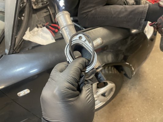 A rondAudi pedig elkezdte folyatni a vizet. Számomra nehezen volt lokalizálható a probléma, az egyértelmű volt, hogy a motor hátsó része felől érkezik a víz, és nemcsak nyomás alatt, hanem mindig, egészen nagy tócsákat hagyott maga alatt az autó, azonnali megoldásért kiáltott. Kiderült, hogy bár a tűzfaltól szörnyen rosszul hozzáférhető hátsó vízcsőcsonk egyik tömítését már kicseréltük, a többi is megadta magát.