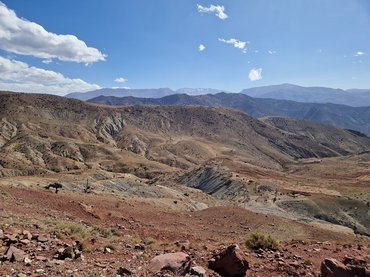Meg kell dolgozni az átkelésért most is, ugyanakkor a látvány magáért beszél. A mért magasságunk 2300 méter, ami 200-zal több, mint a Tichka hágóé. A lombhullató növényzet elhagyása után talán egy fenyvest láttunk, a sivatagra jellemző Tamarisból pedig logikusan egyet sem. Ez az oldal nélkülözi az argánfákat is a rajtuk élő kecskékkel együtt.