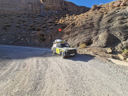 Hajdan itt egy hölggyel keltem át, aki gyakorlott utazónak mondatott akkoriban, hiszen hetek óta lakott a fejem felett a Trabi tetősátrában. Mindazonáltal, abban az évben rengeteget esett a hó, azon a héten is az Atlaszon belül nem volt iskola, faluk voltak elzárva a külvilágtól, stb. Akkor se voltam kevésbé őrült nekivágni, a navigátorom se mondta hogy: Ne!