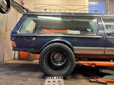A szinterezés még hátra van, addig is marad a kézműves jelleg, ami nem baj sőt, legalább mindenki látja, hogy ez nem egy Temuról rendelt univerzális kit, hanem ízig-vérig autóbuzi termék. Szóval így állunk most, hamarosan jön a hátsó futómű, a sárvédő ívek kivágása, szélesítése és a nagy kerekek, aztán elölről kezdjük az egészet Ursulával, a Peugeot 505 mentővel.