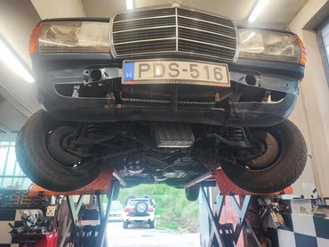 Az egyetlen említésre méltó pozitívum, hogy rugóút az van, nem is kevés. A Merci gyári felállásban is akkorát lép, mint egy széria Wrangler, cserébe minden egyéb paraméterében szerencsétlenebb. Tervek viszont már vannak, előre az Intercarsból megrendeltük a taxi 300TD 4 centivel magasabb rugóit, melyek további pogácsázást kapnak, viszont a többit már a gumira bízzuk, hogy meglegyen a kívánt, plusz 15-20 centi. Hátul a helyzet valamivel egyszerűbb, ide 124-es Merci rugók kerülnek majd némi bölcsőpogácsázás után, a gátlókat pedig legyártatjuk valakivel.