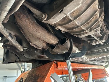 Előző posztom ott maradt abba, hogy átfutottam az autót alulról, és megtaláltam a kipufogó szelelési pontját, amitől nem lettem sokkal boldogabb: a két katalizátorral egyben lévő leömlő és a középdobbal egybeépített hátsó katalizátor közti Y-csatlakozónál egyértelműen látszott a problémát indikáló fekete korom.