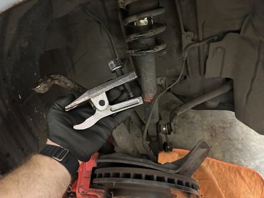 Az alsó talpasokat is kicseréltem – pofonegyszerű művelet, csak a féknyerget érdemes gumipókkal rögzíteni, mert ha leesik a csonkállvány a gömbfejről, akkor megtörheti az ABS-vezetéket, szerencsére ezt előre megtudtam a megfelelő fórumokból, így nem is szívtam meg, jobb ezt nem a saját károdon megtanulni – ha nagyon rutinmunkát csinálsz, akkor is érdemes utánakeresni a folyamatnak, megkímélheted magad egy nagy adag problémától.