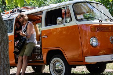 A legjobb képet indulás előtt lőttem a Lőke-kúria fái alatt, amikor Szilárd egyik ismerőse csak úgy odajött a nyitott busz mellé, hogy ott gitározzon, énekeljen. Tiszta hippi élmény, itt voltam már biztos benne, hogy ez egy remek nap lesz, még akkor is, ha nem vezetem a kisbuszt. A kép nem egy tökéletesen megkomponált darab, de a hangulata így is átjön.