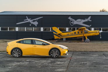 Keserű Gergővel és Tálai Valival csak hirtelen ötlettől vezérelve találkoztunk, mert mindhármunkat érdekelt a Prius 5, és körülbelül 15 perc alatt olyan fotók készültek a kiüresedett székesfehérvári reptéren, ami kiemelt büszkeséggel tudott feszíteni a címlapunkon. A katalógusba illő fotókhoz persze hozzájárult az időjárás is: januárban ritkán fordul elő olyan tiszta és szép naplemente, mint aznap.