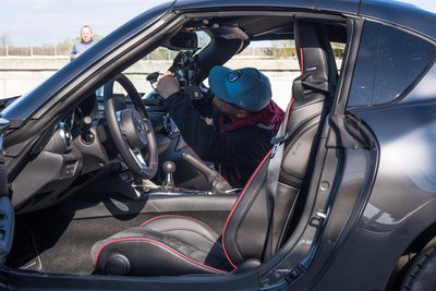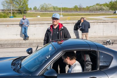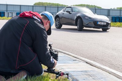 A kétemberes drónt az OMG Visuals Air Unit egyik tagjai irányítja a tér minden irányába, míg másikójuk kizárólag a kamerát kezeli – nincs idő tökölni, mert a kis szürke MX-5 tempósan teljesíti a célegyenest.