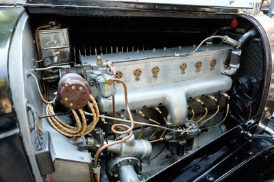 Minden szögből tökéletes a forma, a szín, az arányok. 1,5-ös, négyhengeres motorja 35 lóerős (a versenykiviteleket egészen 45-ig felhúzták), ami nem volt kevés 87 évvel ezelőtt. Igazi érdekessége, hogy nem huzalos vagy rudazatos fékje van, mint akkoriban a kocsik nagyjából 99%-ának volt, hanem hidraulikus, négy kerékre ható