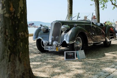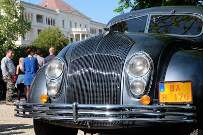 Mercedes-Benz 300 S, az a típus, amelyből Adenauer német szövetségi kancellárnak négy is volt szolgálati ideje alatt. A Rolls-Royce-okat is kis hiján elhomályosító kocsit a magyar Victory Auto restaurátoműhely hozta Balatonfüredre. Ez az "Adenauer" egy 1954-es példány