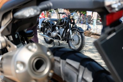 Ha már a BMW volt a szponzor, hoztak és hívtak néhány motort is a rendezvényre. Ez itt egy ötvenes évekbeli, még komor, fekete, hátul bakteleszkópos példány