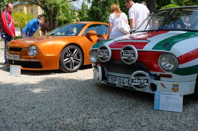 Jobbra egy Skoda 130, balra egy Skoda 13..., ja nem is, csak hasonlít. Mi is ez? Egy Hoffmann & Novague R200-as. Cseh gyártású autó, 2015-ben jelent meg, alapja a régebbi fajta Audi R8-as, ennek megfelelően középmotoros és 420 lóerős. Gyártója úgy tervezi - 50 darabot elad majd belőle