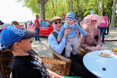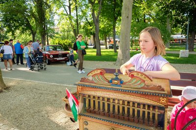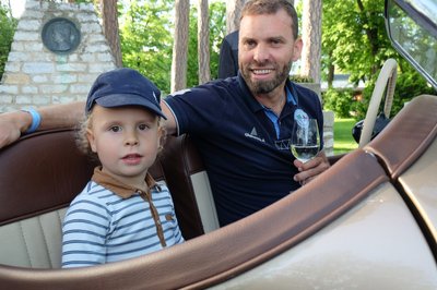 Verklis is tekerte a gépét a Concours d'Élégance-on- aki szokatlan módon egy kislány volt. Háttérben az Ulrich-02-es