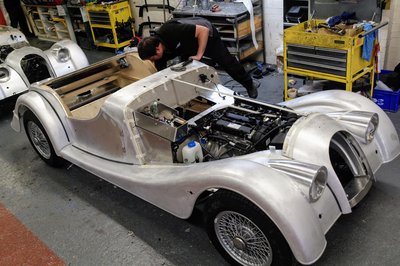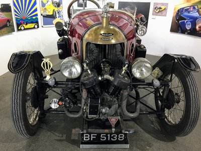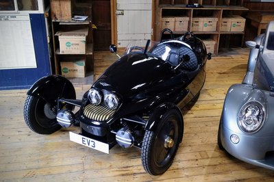 Ez a gyönyörűség egy korai Morgan Three Wheeler. A Morgan 1909 óta gyárt autókat, és ilyen háromkerekű cycle-carokkal kezdte. Olyan fantasztikus ádáz harcsafeje van a kipufogó-leömlőkkel és a kábelekkel, hogy már készítené az ember a támolygót és a pergetőbotot. Ebbe a gyárba igyekeztünk épp, amikor...