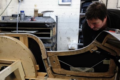 A sárvédőket 80 éves sablonok közé szorítva laminálják, az a két darab van, amióta létezik a modell.