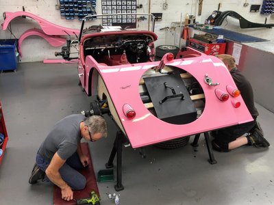 A pink Plus 4-hez pink bőrt és pink tetőtextilt is rendelt a dizájnérzékeny leendő tulaj. Utóbbihoz 6000 fontért (kétmillió forintért) legyártatta az anyagot magát, mert nem létezett. A gyár - láthatóan nagyot nyelve - teljesít. Kacsintva megsúgták, hogy maradt még egy tetőre való, ha valaki megkívánta.
