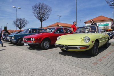 Olasz meló. Több különböző Alfa Romeo és Fiat pompázott a sorban, Fiat 125-től az Alfasudon át Spyderig mindenki talált szépséges, érett donnákat magának