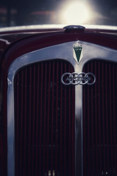 Csodás részlet egy Auto Union DKW F7 elejéről, valahonnan a '30-as évekből. A négykarikás logót talán senkinek nem kell bemutatni, íaz autó a mai Audik egyenesági felmenője, ükapja