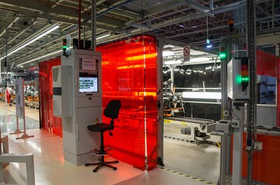 A különböző piacok szabályozásaira ezen a munkaállomáson készítik elő az autókat. Ehhez a dolgozó hangutasítást kap a fenti hangszóróból, amit csak akkor hall, ha alul a kijelölt területre áll. Kipróbáltam, tényleg csak ott hallani, de ott kristálytisztán. Csúcs!