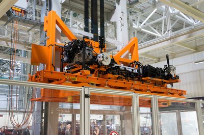 Infrás-kamerás munkaállomáson nézik át gépi és emberi munkával a futómű, a váltó és a motor összeszerelését