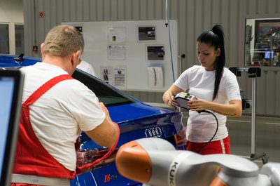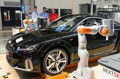 Kuka Éva robot akcióban egy Audi TT-n. Ide kattintva egy videót is láthatsz róluk