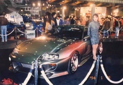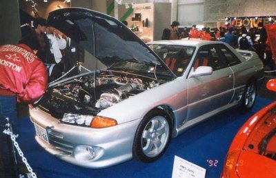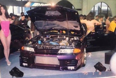 Hát igen, ma már ilyen nincs a tuningshowkon. Mármint bikinis csaj, a Skyline ma is népszerű tuning alap.