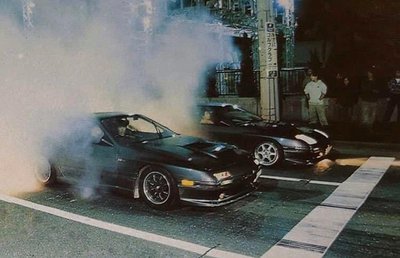 Nissan 300 ZX, és talán egy Mitsubishi Starion, ahogy épp negyed mérföldről negyed mérföldre élnek.