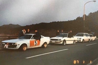 A fotó szerint 1987-es kép, a Celica viszont már itt is legalább 10 éves. Plusz egy Suzuki Alto, valamint egy azonosíthatatlan japán tepsi.