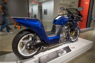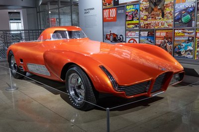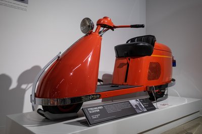 A Petersen Múzeum legfelső szintjén a motorizáció történetét mutatják be, kiemelten kezelve a kaliforniai múlthoz kapcsolódó járműveket. Ezt a Salsbury robogót 1947-ben gyártották Pomonában (Kalifornia), kezelése a pedálok miatt jobban hasonlított az autókéhoz, mint más motoroké. 400 példány készült a hat lóerős, mandarinzselé színű áramvonalból