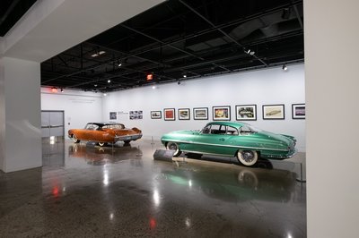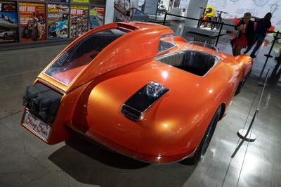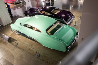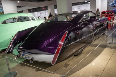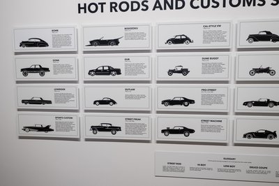 Tanulmányok az ötvenes évekből a felső szinten. Féllel lejjebb a hot rodok vannak, lent a filmekben szereplő autók, a pincében pedig, csak tárlatvezetéses formában a legdurvább érdekességek százai láthatók. Jellemző, hogy délután háromkor indult volna egy turnus, nekünk viszont pont akkor indult vissza a buszunk Los Angeles túlsó felébe. Ami nem kicsi, amúgy