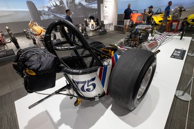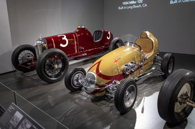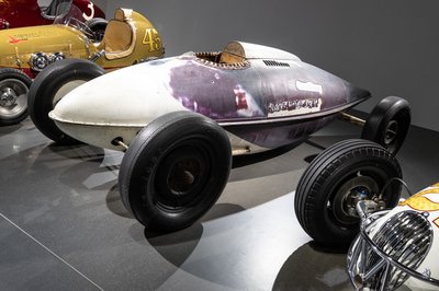 Frank Kurtis egy másik kaliforniai versenylegenda. Franjo Kureticként született egy horvát-amerikai családba, s a háború után Glendale-ben kezdte építeni versenyautóit, amelyek 1950-55 között minden Indy 500-at megnyertek. Ez az 1947-es Kurtis Kraft azonban nem Indy-versenykocsi, hanem egy midget (törpe) racer, ilyenekkel laza talajú, emelt kanyaros oválpályákon versenyeztek anno. 110 lóerős Offenhauser sornégyes hajtotta, Mellette egy 1924-es Miller 122 versenyautó