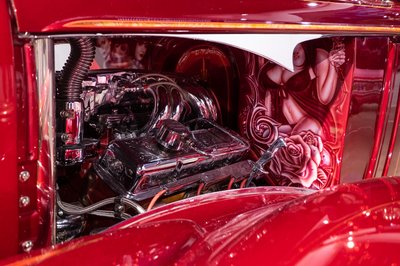 Mario de Alba Sr. negyven éve készíti díjnyertes lowridereit - ebbe az 1936-os Chevrolet Master Deluxe-ba 2002-ben kezdett bele, A motor egy 5,7 literes Chevy-V8-as 290 lóerővel. Egy pillanatra érdemes szemügyre venni a California-style díszítéseket a motortérben
