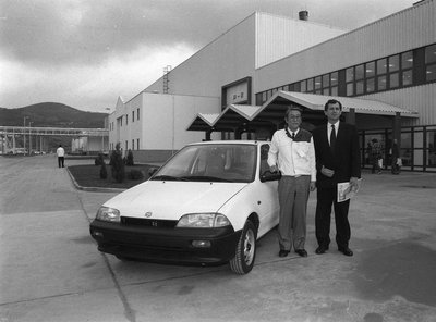 Míg végül augusztus 28-án elkészült az első mintapéldány. Ez a fotó tulajdonképpen a mai lapozgató apropója, hiszen napra pontosan harminc éve készült. Lepsényi István, a Magyar Suzuki Rt. vezérigazgatója és helyettese, Akira Shinohara avatta fel a Swiftet egy házi ünnepségen