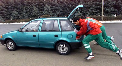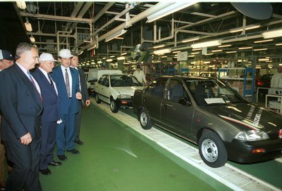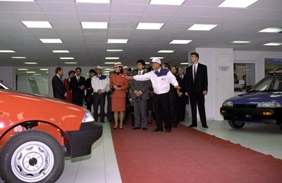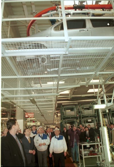 Sokáig persze nem rejtegették: április 10-én indult be az Ignis gyártása. Szuzuki Oszamu mutatta be az újdonságot, amelybe a képen Medgyessy Péter, akkori miniszterelnök száll be éppen