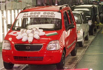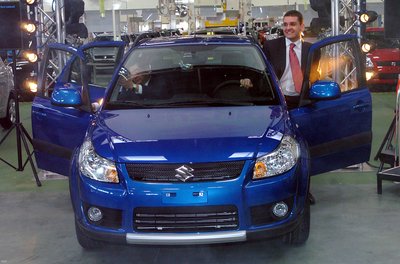 Az első SX4 Esztergomban! 2006. február 27-én Cuda Hiroshi, a Suzuki Motor Corporation vezérigazgatója és Kóka János, akkori gazdasági és közlekedési miniszter vetette le a szalagról