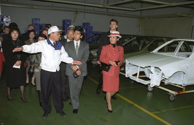 Az első legyártott autóba éppen Gyurcsány Ferenc, akkori miniszterelnök ül be, jobbra Japán budapesti nagykövete, Inagava Terujosi