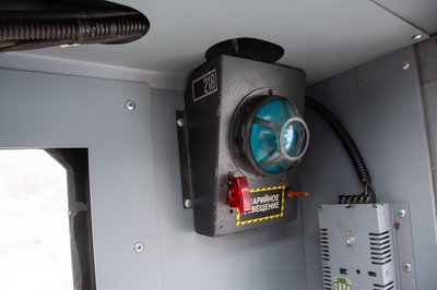 A cirill betűs felirat a nagy zajra és a fülvédő használatára figyelmeztet.