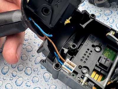 Ez a két vezeték törik meg az irányjelző karban, nem tudtam megforrasztani itt, inkább kicseréltem a vezetékeket