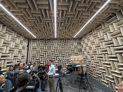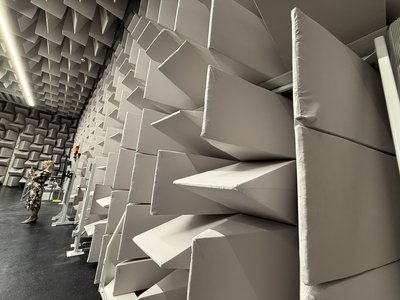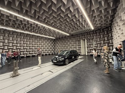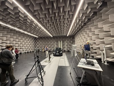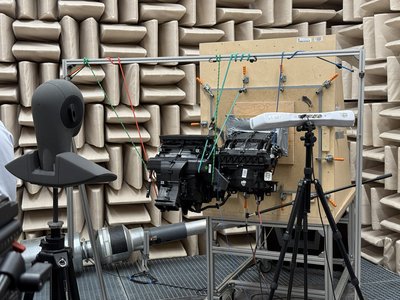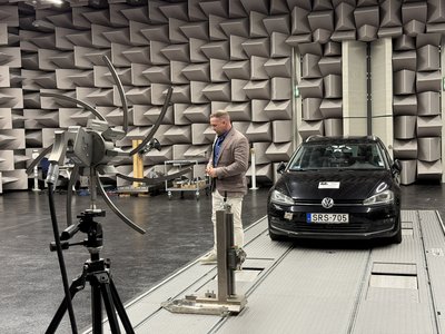A nagyobb süketszobában már beszerelt állapotukban figyelik az alkatrészek zajkibocsátását