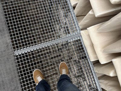 Az ajtó a szivacsokkal együtt bő egy méter vastag, itt tényleg minden hanghullámost semlegesítenek