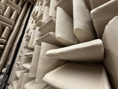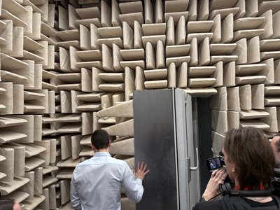 A kisebb süketszobában a még beszerelés előtt álló alkatrészek zajkibocsátását mérik