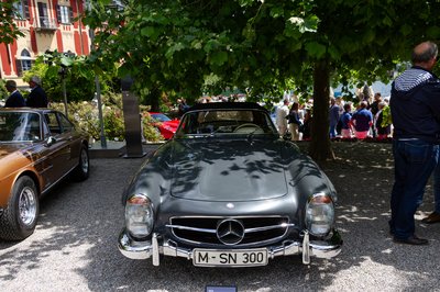 Matt fényezéssel, kopásokkal, láthatóan megőrizve szomorkodott a 300SL Roadster a fák tövében, maga Alex Birkenstock érkezett vele, ha mond valamit a neve, akkor már tudod, hogy a papucsaiból sikerült összelapátolni nem kicsi vagyonát